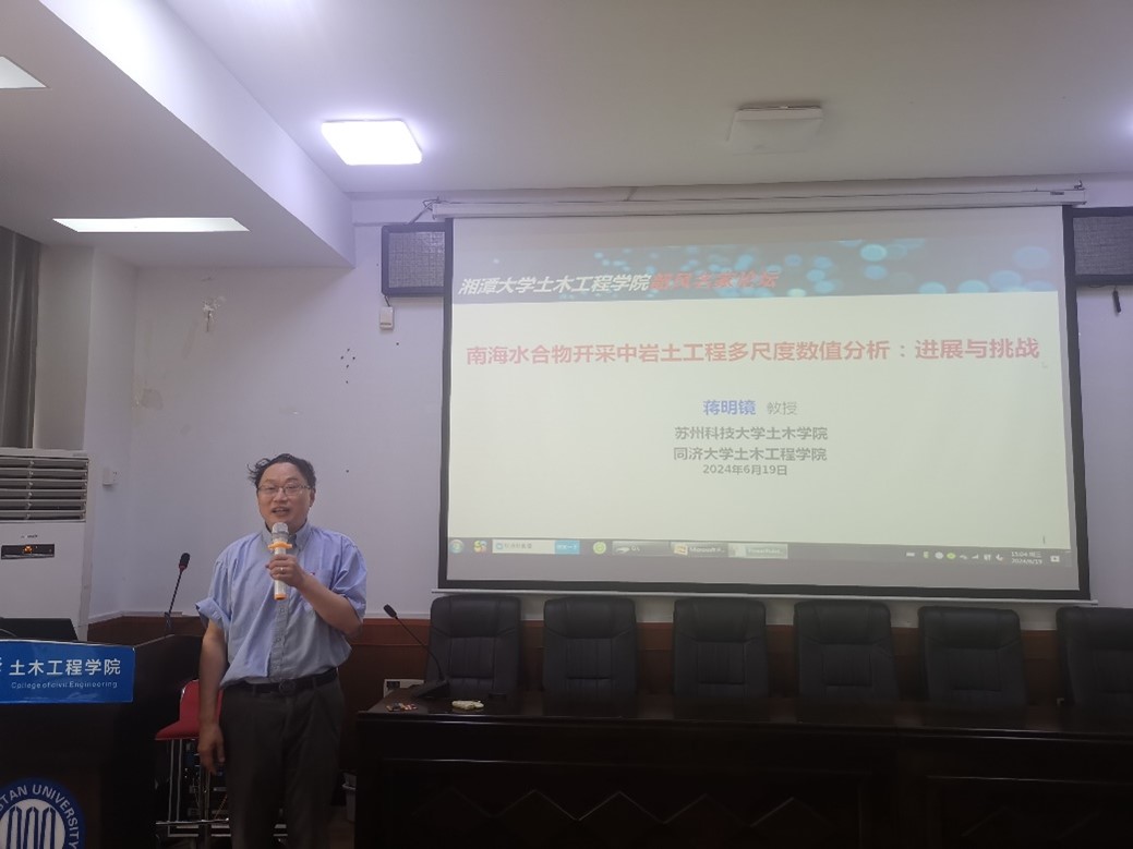 6月19日下午,苏州科技大学、同济大学的国家杰青蒋明镜教授和中国科学院武汉岩土力学研究所海外优青赵涛研究员应邀做客我校韶风名家论坛,在欧美日逼视频学术报告厅分别作了题为“南海水合物开采中岩土工程多尺度数值分析:进展与挑战”和“海底输油管道隆起屈曲阻力研究”的学术报告。报告会由欧美日逼视频院长龙志林教授主持,我校百余名师生参加了本次学术报告会。本次报告会由教务处、欧美日逼视频、岩土力学与工程安全湖南省重点实验室联合主办,是湘潭大学复校50周年纪念系列活动之一。