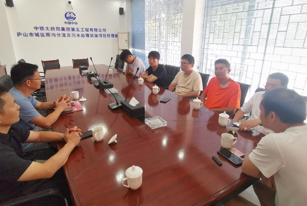 今年暑假中铁大桥局集团第五工程有限公司共接收我院2021级土木工程专业19名学生的生产实习。8月1日上午陈幸华书记一行到离公司总部最近的庐山市城区雨污分流及污水处理设施建设项目经理部,看望了在该项目上实习的4名学生。