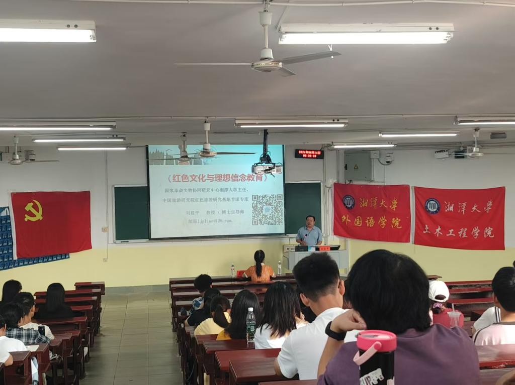 刘建平以“红色文化和理想信念教育”为主题进行第一次授课。他从红色文化的基本内涵和特点、红色文化在大学生思想政治教育中的作用、利用现状、红色基因传承、习近平红色文化传承的重要论述、湖南红色文化资源概况、红色文化与湘籍革命家理想信念七个方面进行了详细阐述。他指出传承红色文化和坚定理想信念的重要性,指导学员如何在传承红色文化中坚定理想信念。他强调,我们要追求理想信念,传承红色基因;我们要始终做到不忘昨天,不弃今天,不顾明天,不动摇、不懈怠;我们要不忘初心、继续奋斗,提升综合素质,驱动全面发展,努力立志成才,为湘大的建设贡献力量,为将来社会的发展贡献我们的青春智慧。