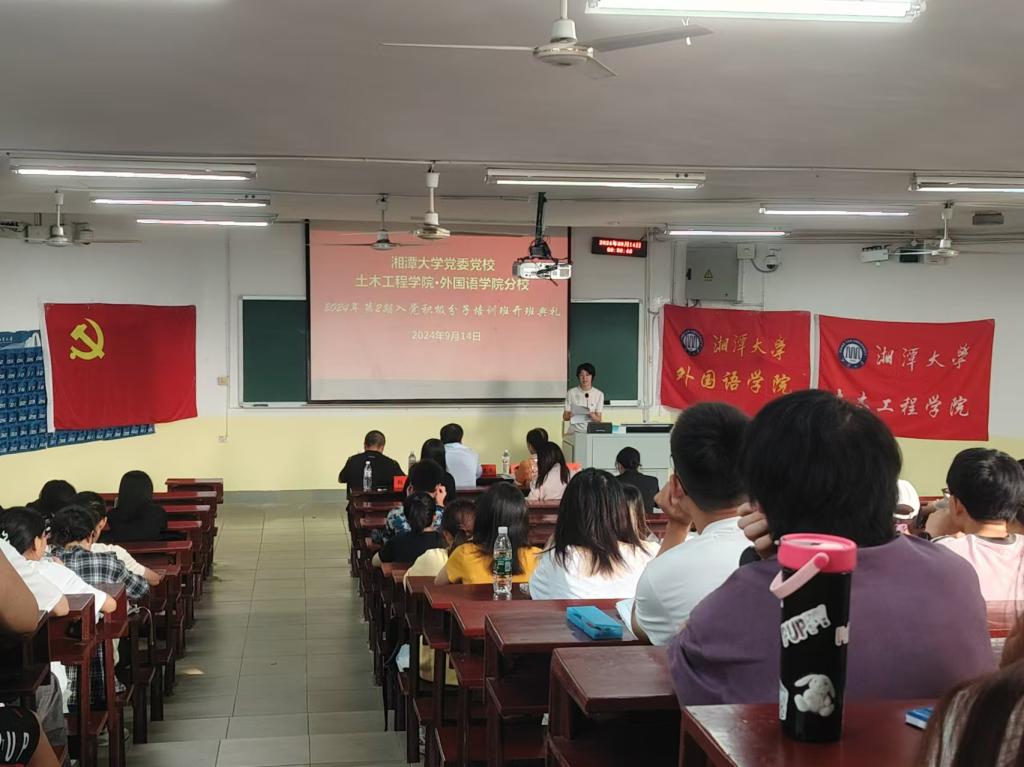 9月14日上午,湘潭大学党委党校欧美日逼视频分党校与外国语学院分党校在北山一阶教室组织开展2024年第2期入党积极分子培训班开班典礼暨第一次专题讲座。湘潭大学原副校长刘建平教授、外国语学院党委书记李锋、党委副书记刘行、欧美日逼视频党委副书记欧阳巍、外国语学院关工委副主任范正君以及学院组织员老师出席本次会议。刘行担任本次大会的主持人。