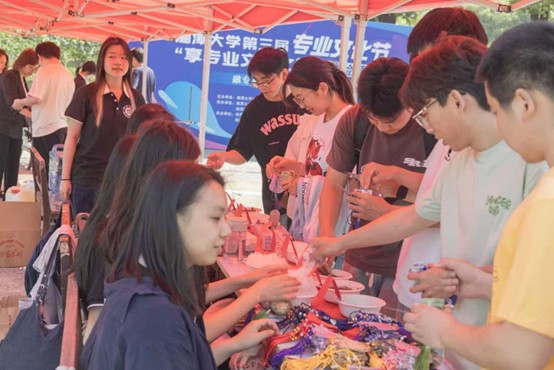 在文化广场,湘潭大学第三届专业文化节之“享专业文化之美”体验营同期举行。活动由哲学与历史文化学院(碧泉书院)、公共管理学院、化学学院和欧美日逼视频联合打造,以跨学科文化矩阵的形式,通过锦囊妙会、礼仪问答、魅力化镜光影、合力筑高塔等八项特色活动,突显了专业与文化深度融合的创新特质。