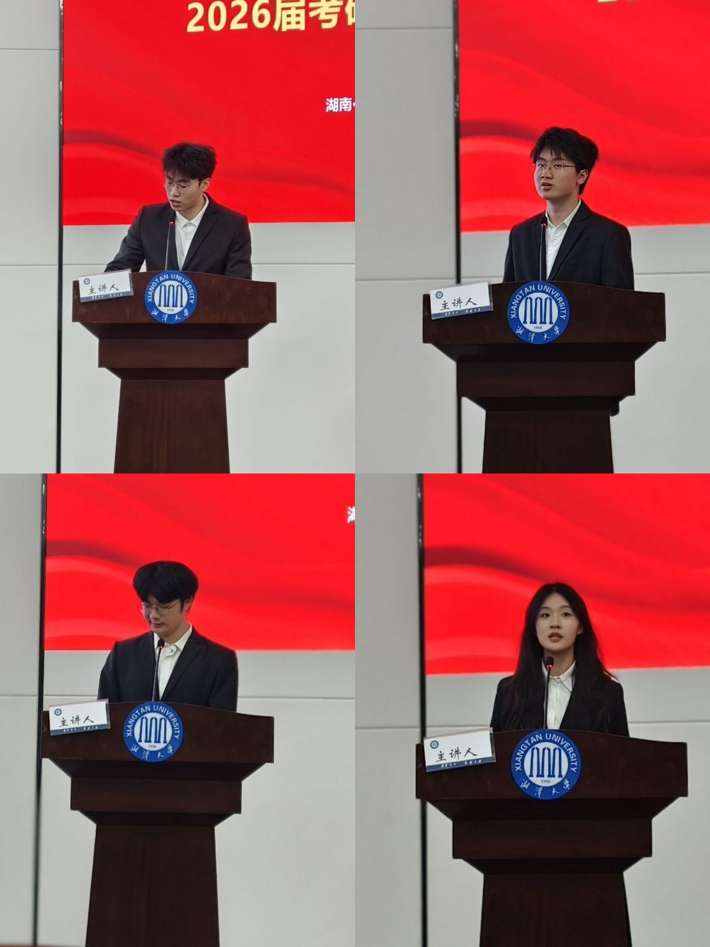 为帮助2026届学生明晰升学规划,活动邀请了罗嘉妮、戴博韬、彭超雄、王汉涛四位优秀学子做经验分享。他们从保研政策、竞赛突围到考研备战,倾囊相授择校方法、备考技巧和压力管理,实用的建议让同学们受益匪浅。