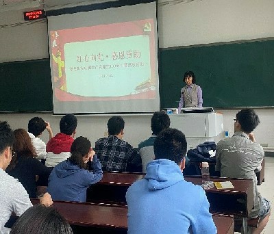 然后进行本次系列主题活动的第二个部分——红心向党,感恩资助。由辅导员卜韶芬向大家重点介绍了建党以来奋战在一线的共产党员的巨大贡献,强调国家及学校各种资助政策都离不开党的正确领导,让大家充分认识到国家对于本科生的关怀。并展现了2017级土木工程一班曾浩哲同学的优秀事迹,他通过自已努力,自强自立、实现梦想。