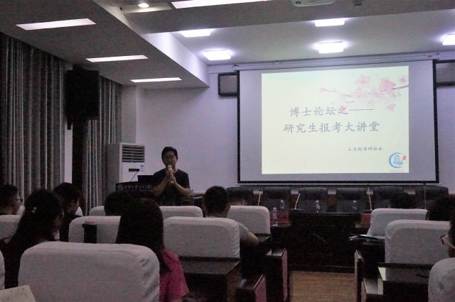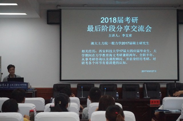9月27日晚,我校土力院考研协会在土力院楼学术报告厅举办了一场研究生报考的论坛会,为我院即将奔赴考研战场的同学们答疑解惑。院党委陈宾书记、吴文朋老师、罗百福老师和我校硕士研究生李支密进行了发言。