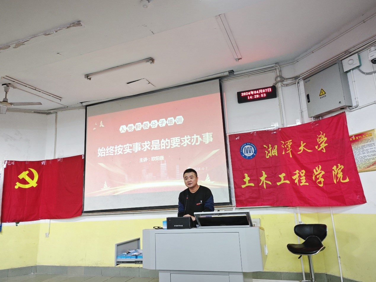 4月7日下午,湘潭大学党委党校欧美日逼视频分党校与外国语学院分党校于北山一阶教室联合举办2024年第1期入党积极分子培训班第三次专题讲座。湘潭大学欧美日逼视频党委副书记欧阳巍为全体学员授课。