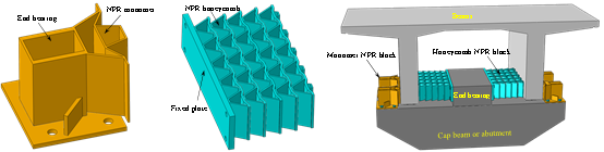 桥梁挡块能有效限制上部结构横向移动,同时够减轻墩台损伤,受到了国内外学者广泛关注。目前,主流挡块包括混凝土挡块与弹塑性钢挡块,同时还有橡胶缓冲型、记忆合金双层抗震以及预应力装配式等系列新型挡块,桥梁挡块发展要求及具备高强度、刚化强化可变、高耗能和更换等特点。为此,提出一种负泊松比结构桥梁挡块,研究证实其具有刚度受荷强化和高耗能等特性,实现了“低冲击荷载→动态强化承载”的阻尼式抗震需求,并设计了榫卯式焊接工艺,可实现低成本、大批量生产。