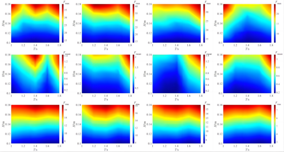 (3)波浪与柱体结构群相互作用研究:对规则/非规则波浪与柱体结构群相互作用问题进行研究,分析了不同波参数对柱体结构群受力特性与波浪场分布特性的影响,揭示了柱体结构群所受波浪力与波参数之间的关系,阐明了波浪与结构群之间耦合作用的力学机理。(Ocean Engineering, 2021, 220: 108379;Ocean Engineering, 2022, 243: 110245.)可为海洋立柱结构群的设计提供参考与理论支撑。