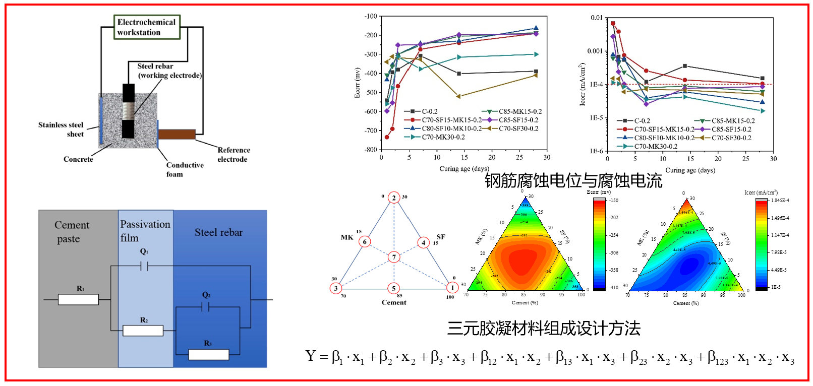 图3 海水拌合UHPC基体中钢筋电化学特性与胶凝材料组成设计方法